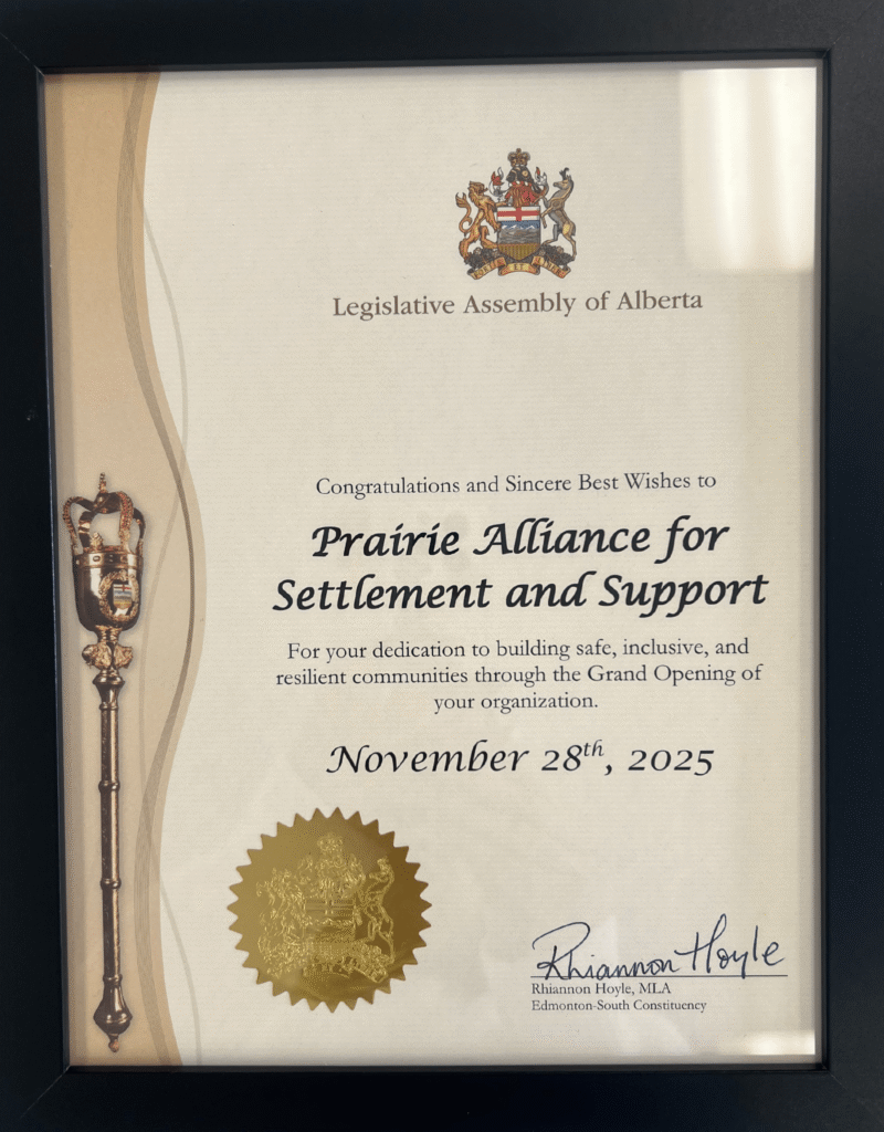 As PASS continues to grow, we remain focused on our mission to support settlement, inclusion, and community connection across Edmonton. Recognition from community leaders motivates us to deepen our impact and remain responsive to the evolving needs of newcomers and families.